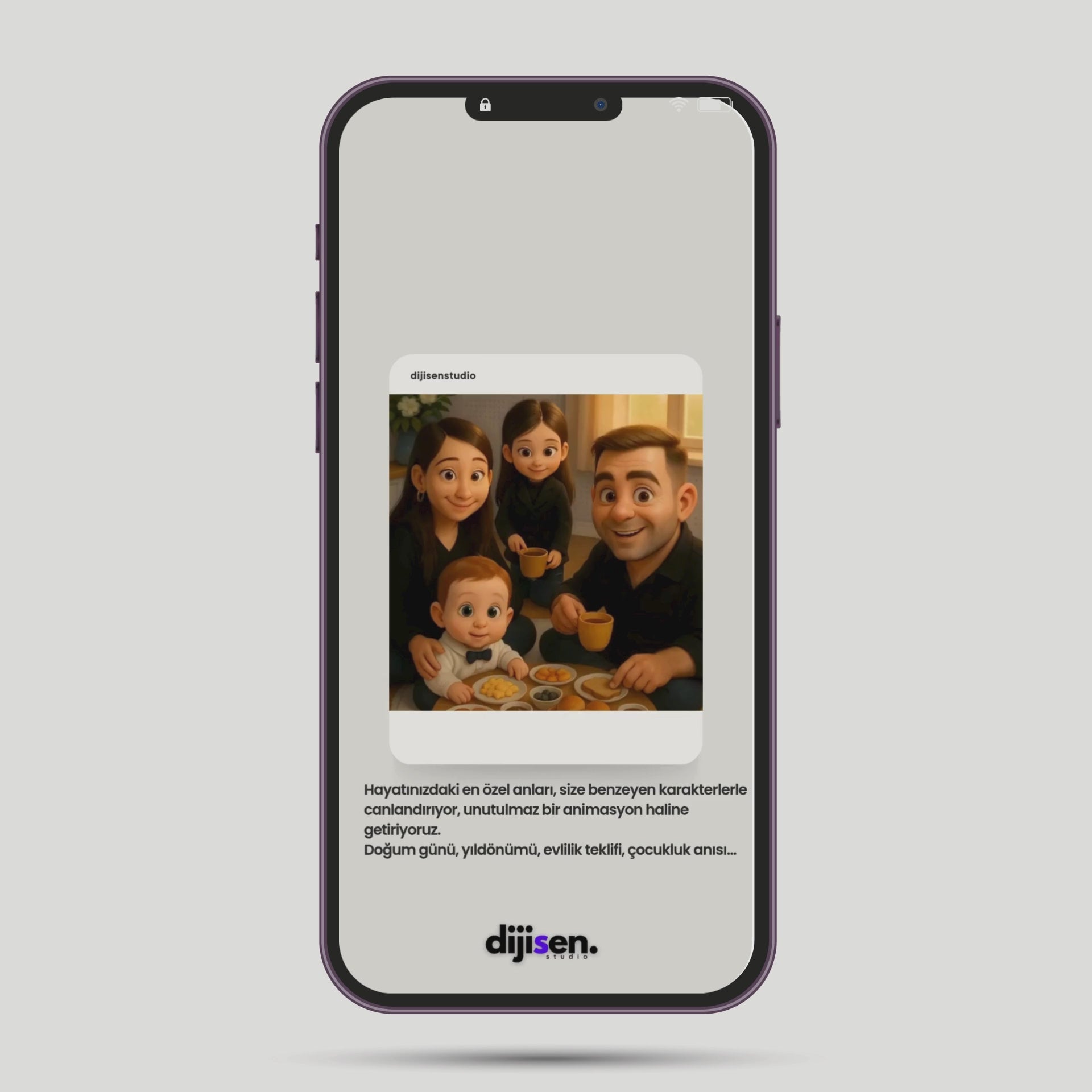 ✔️ Animasyon karakterleri size %100 benzemeyecektir. Gönderdiğiniz fotoğraflardan hareketle yüz şekliniz, saç renginiz ve vücut tipiniz gibi temel özellikleriniz göz önünde bulundurularak karakterleriniz oluşturulur, ancak birebir aynısı olmayacaktır.